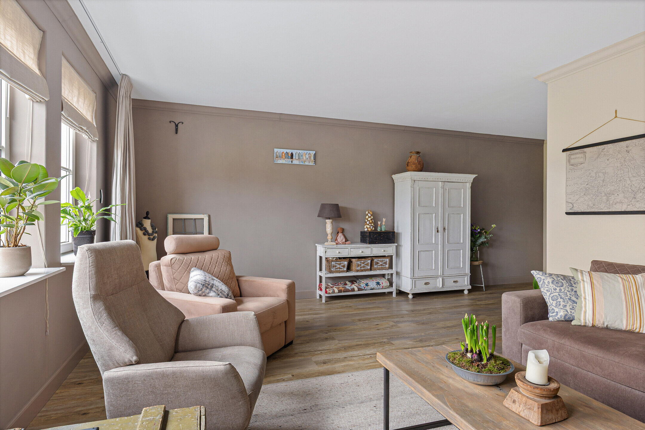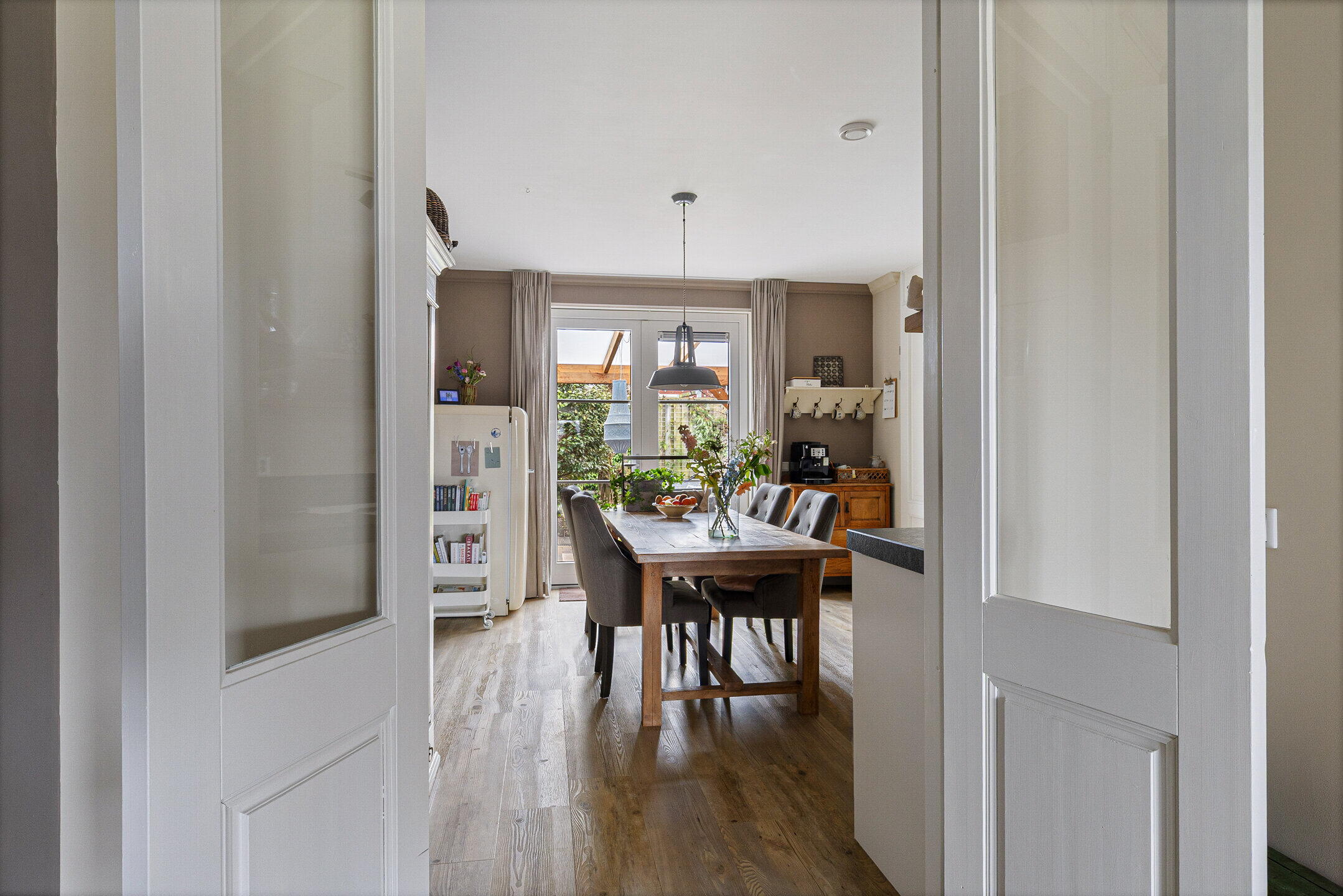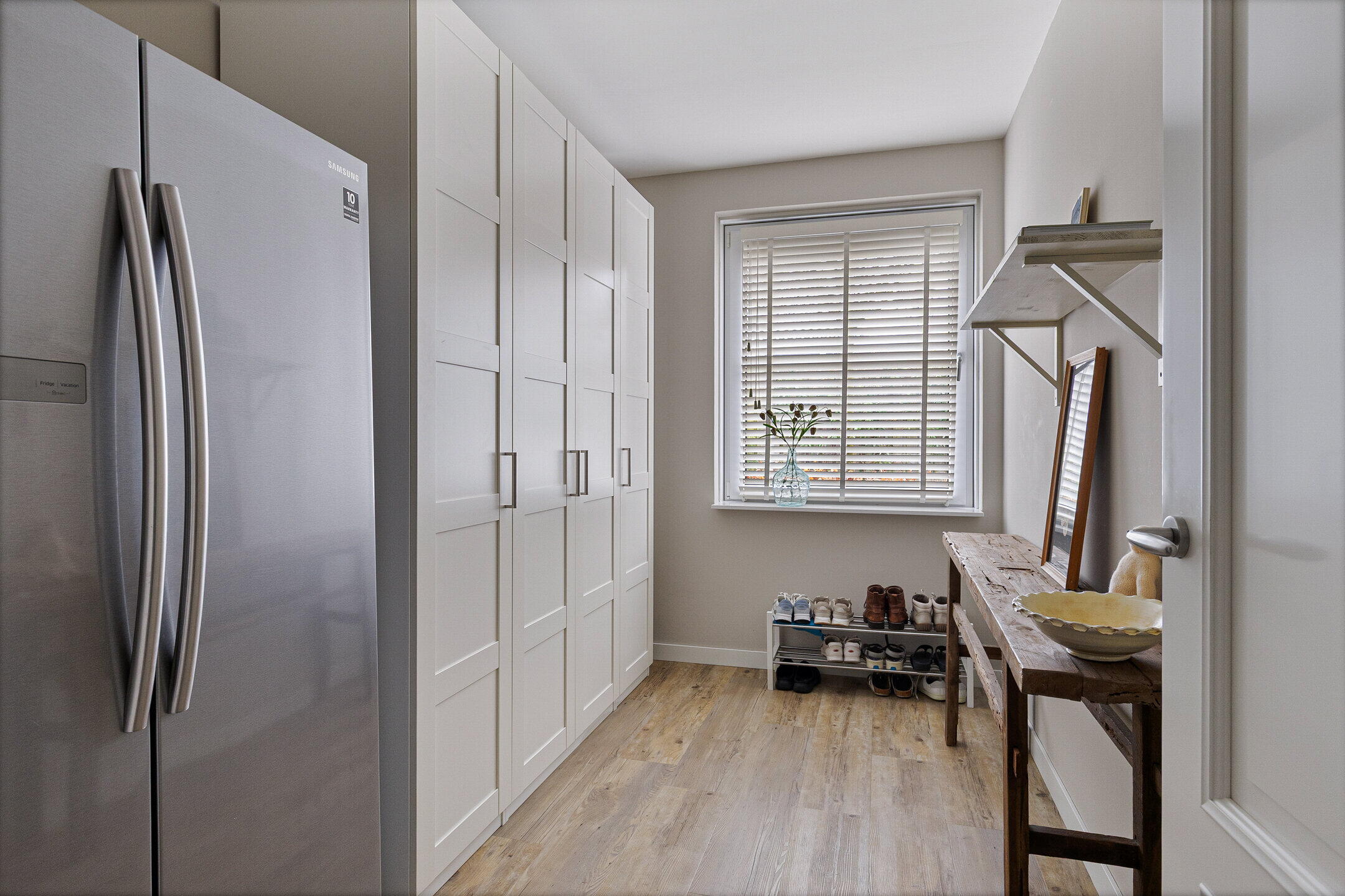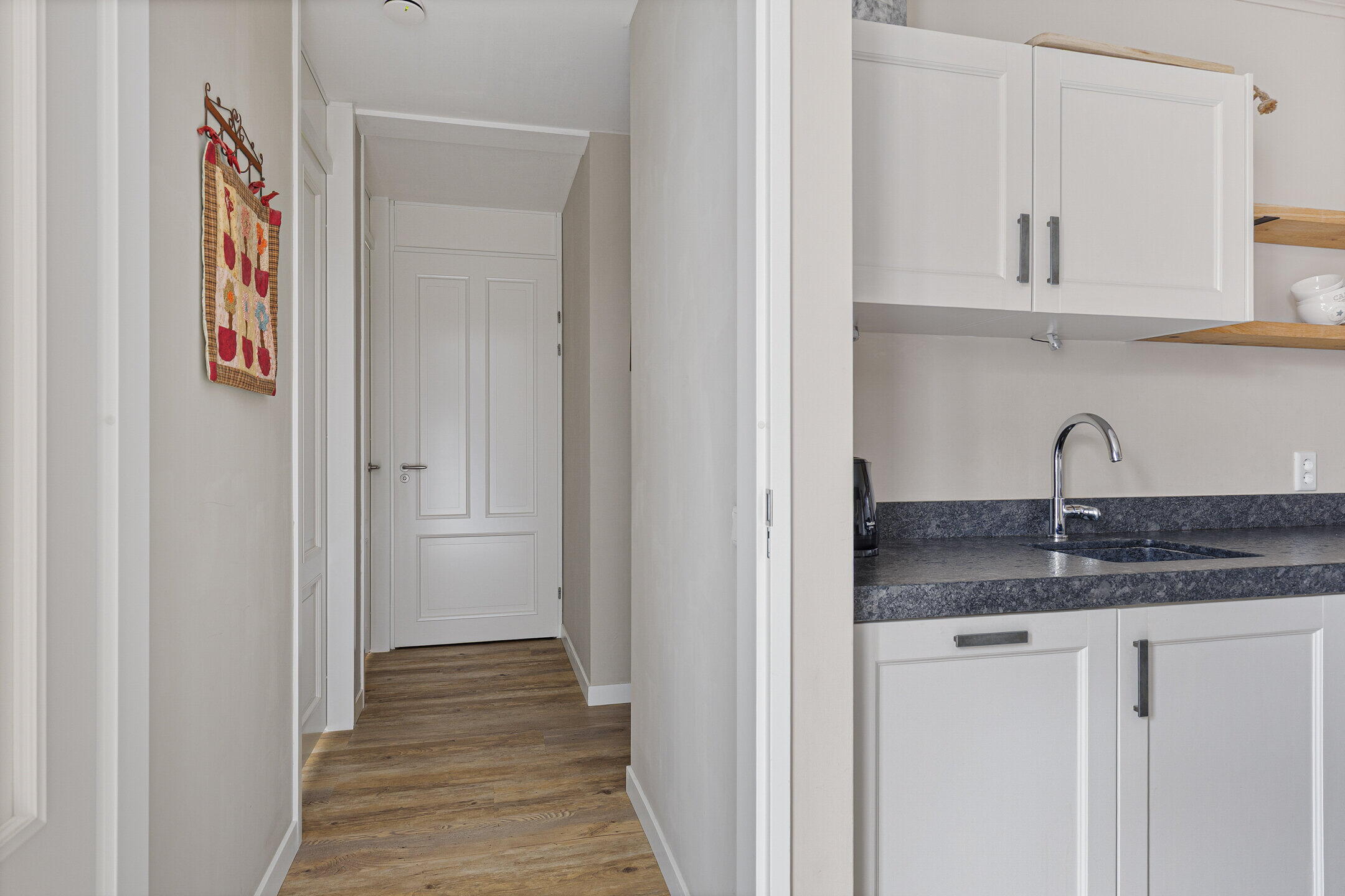 Entree met hal en toilet, meterkast en de trapopgang naar de verdieping. De gehele begane grond is afgewerkt met een moderne PVC-vloer, wat zorgt voor een strakke en onderhoudsvriendelijke uitstraling.