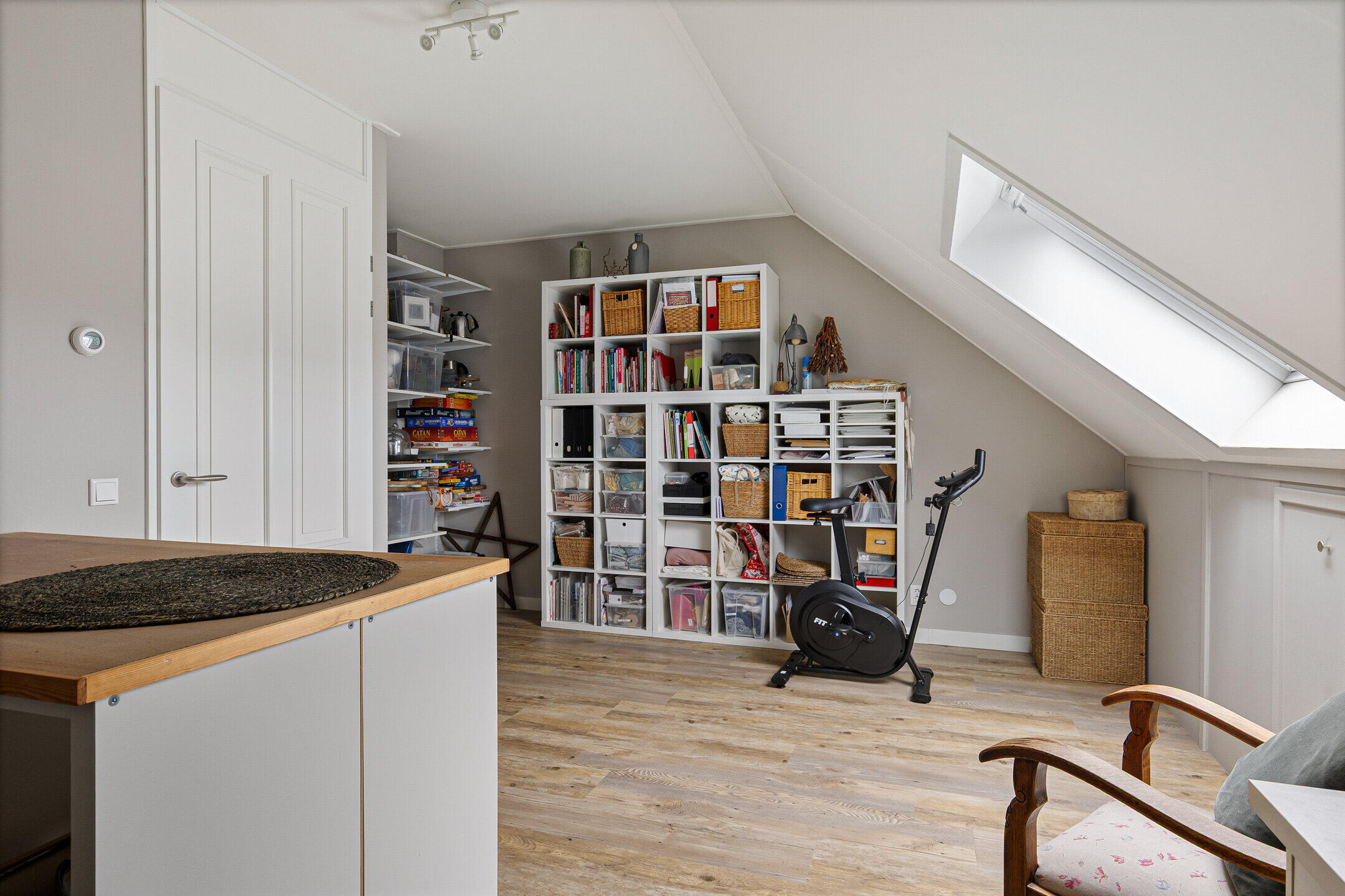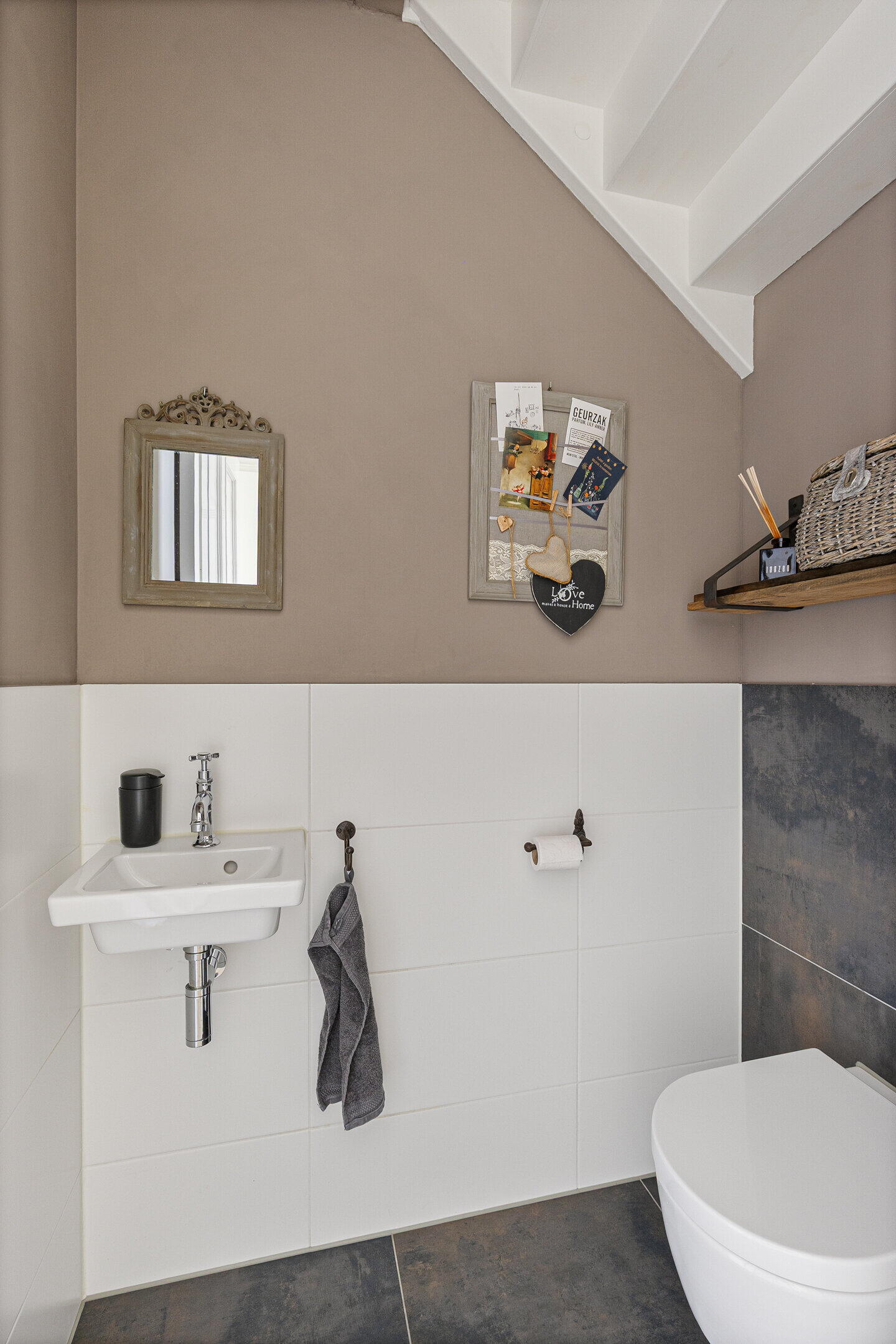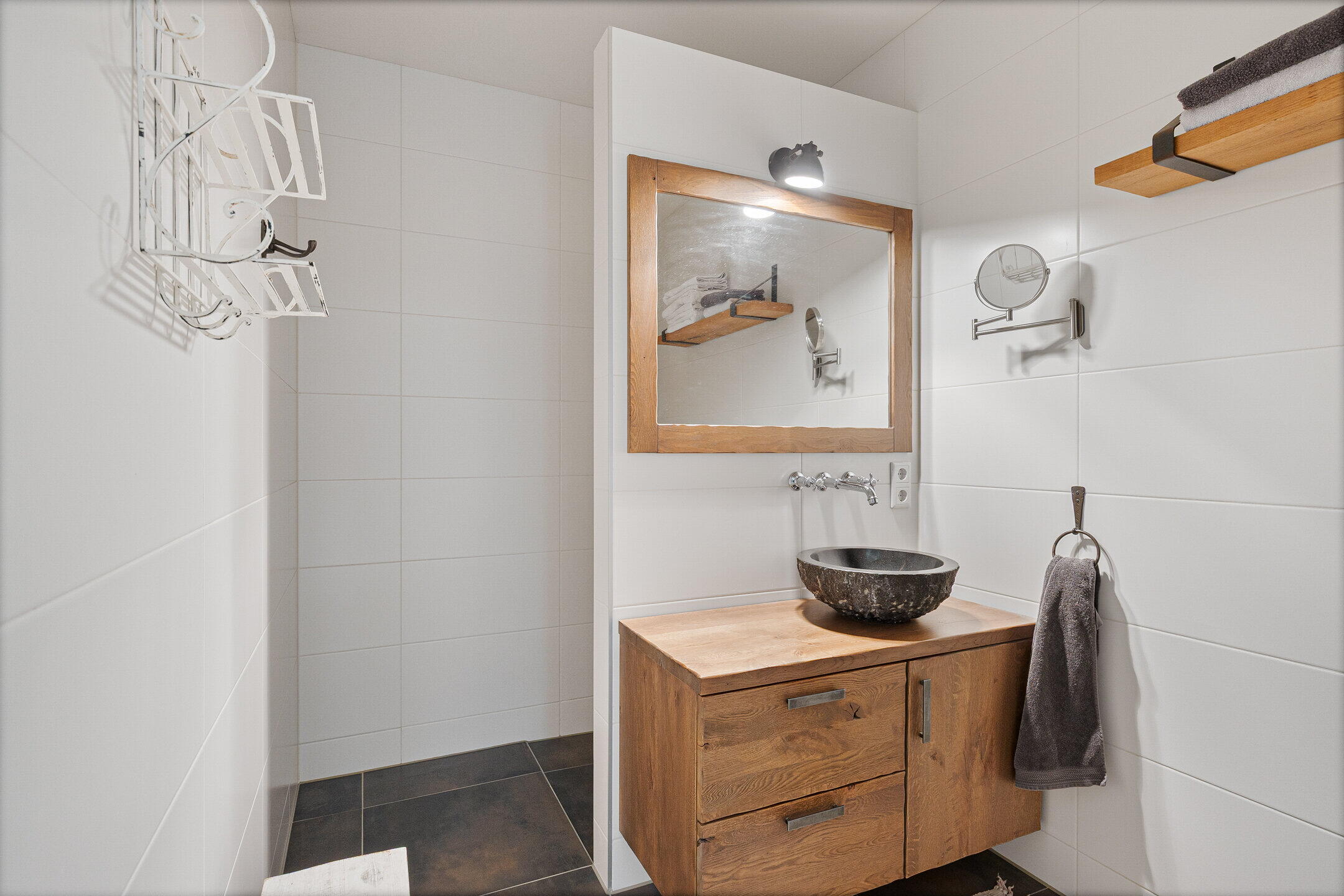De badkamer is uitgerust met een toilet, inloopdouche en een wastafelmeubel. Op de overloop bevindt zich een luik met vlizotrap naar de bergzolder. De gehele verdieping is voorzien van vloerverwarming, wat zorgt voor extra comfort.