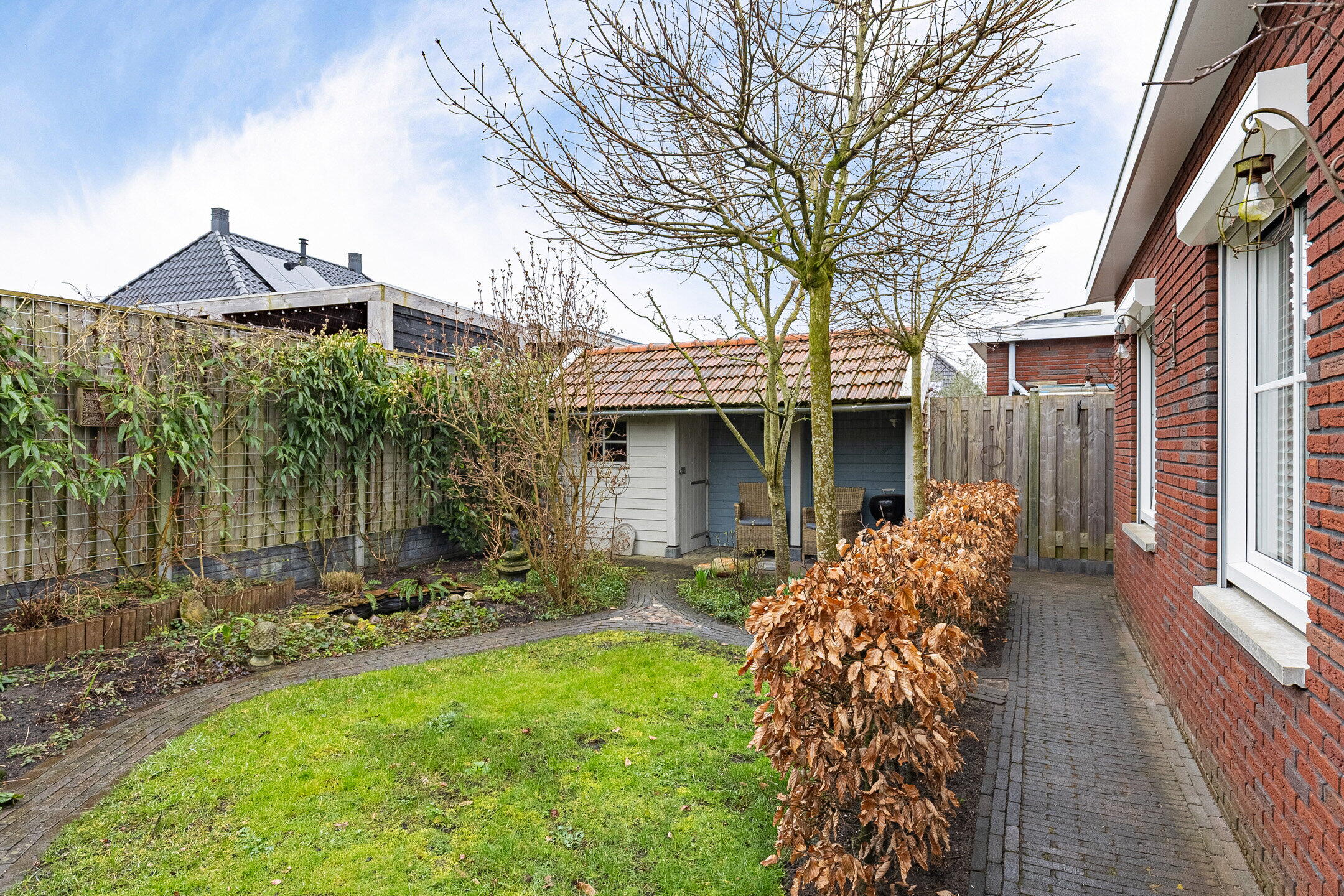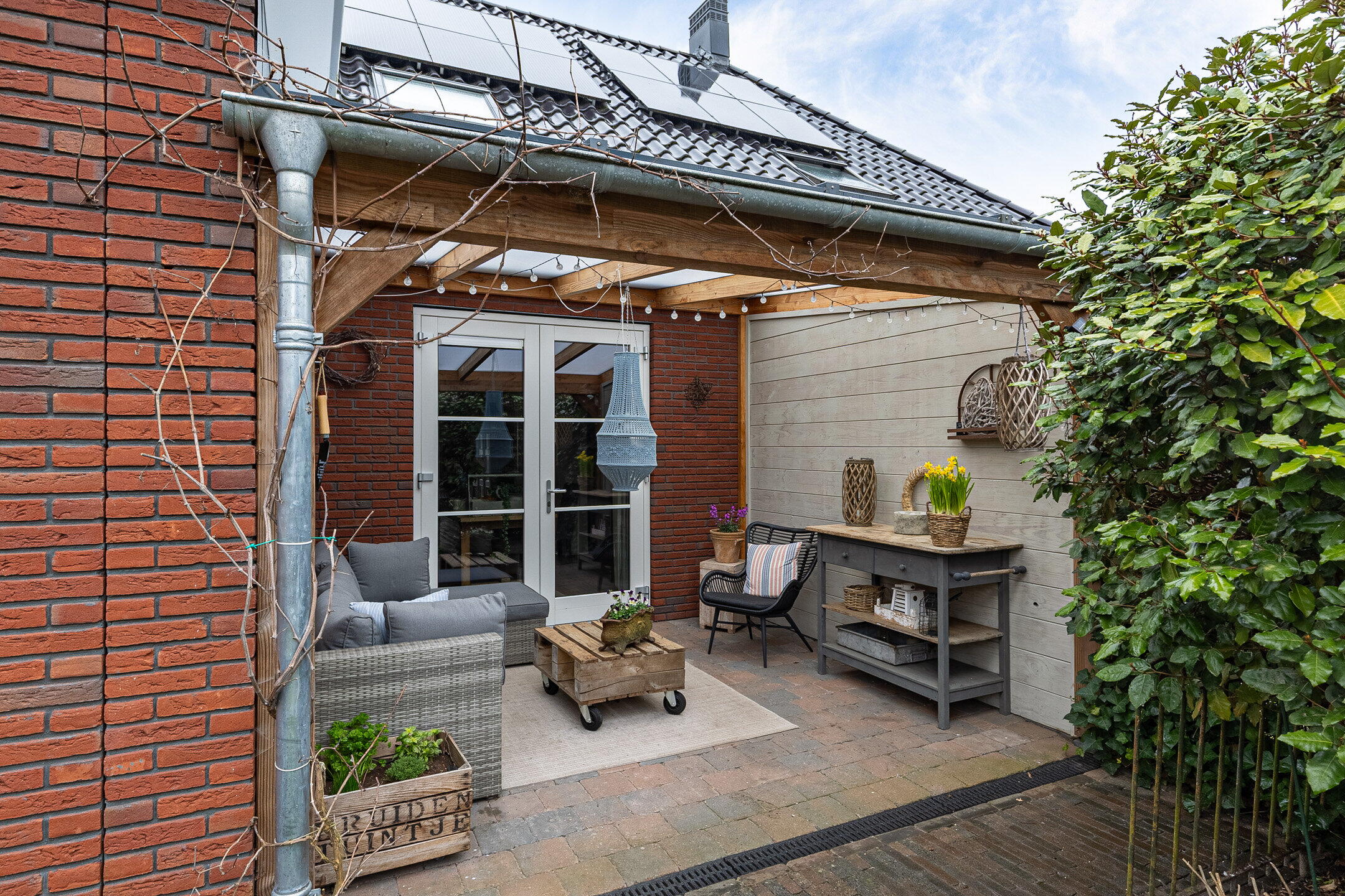 Fraai aangelegde tuin op het zuidoosten, voorzien van een gazon, diverse beplanting en bomen. De tuin biedt veel privacy en is uitgerust met een overkapping, ideaal voor ontspanning en gezellige buitenmomenten.