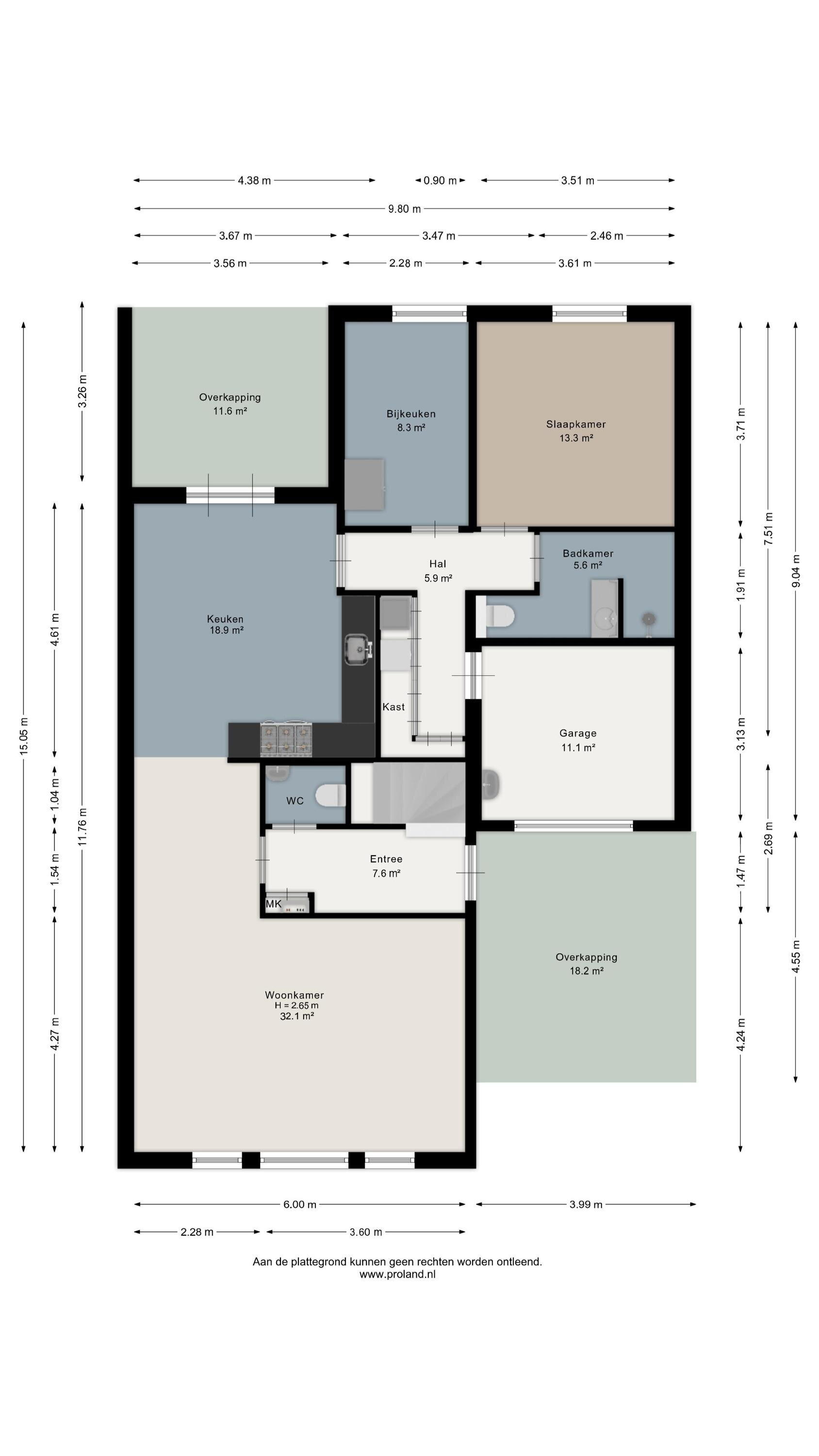 - 115 m² (8.5 meter diep en 13.5 meter breed)